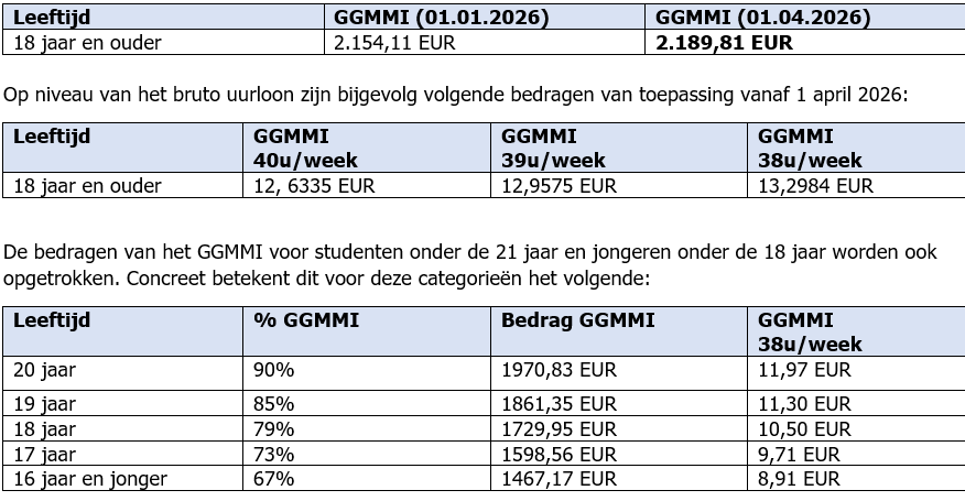 Verhoging van het GGMMI | Vanaf 1 april 2026